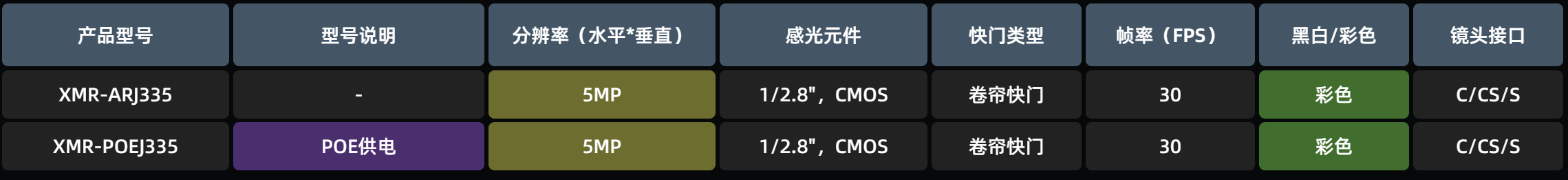 该系列产品公共参数